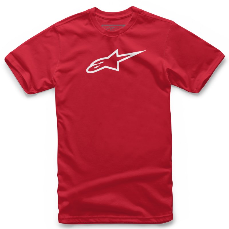 Dětské červené tričko Ageless s krátkým rukávem a bílým logem Alpinestars.