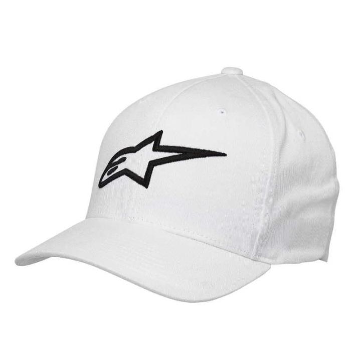 Pánská bílá kšiltovka Ageless flat s rovným kšiltem, vyšité logo Alpinestars.